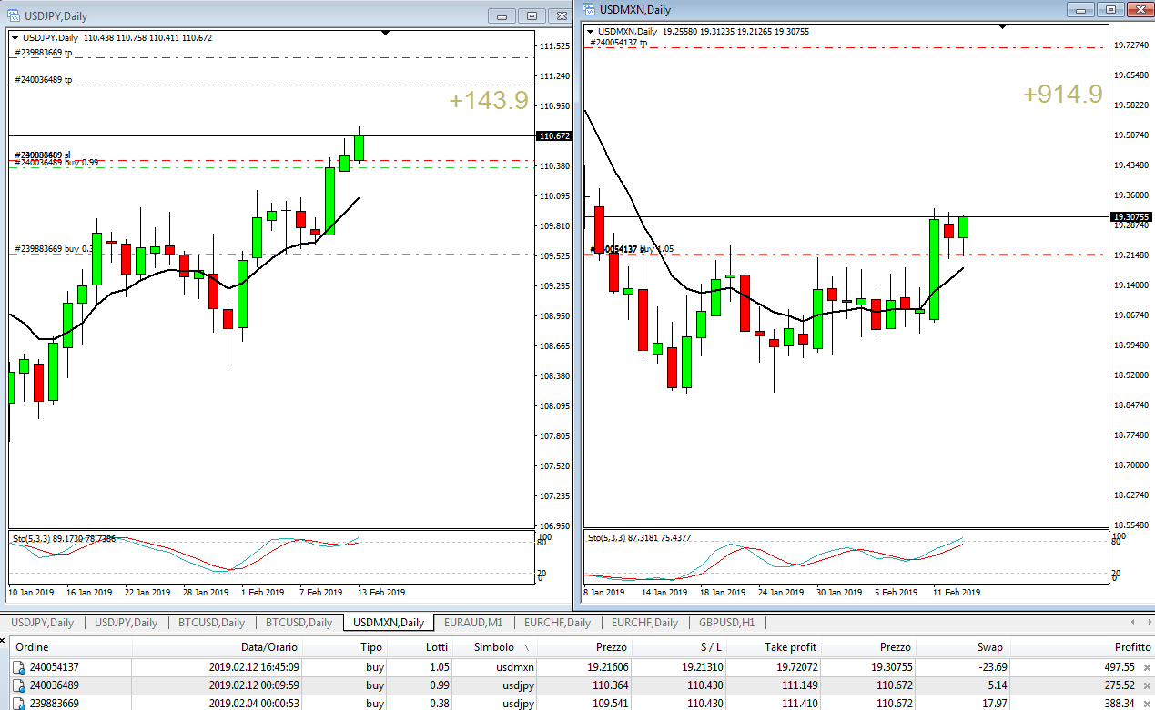 Ecco la situazione alle ore 9 dei segnali che abbiamo inserito ieri sera a mercato