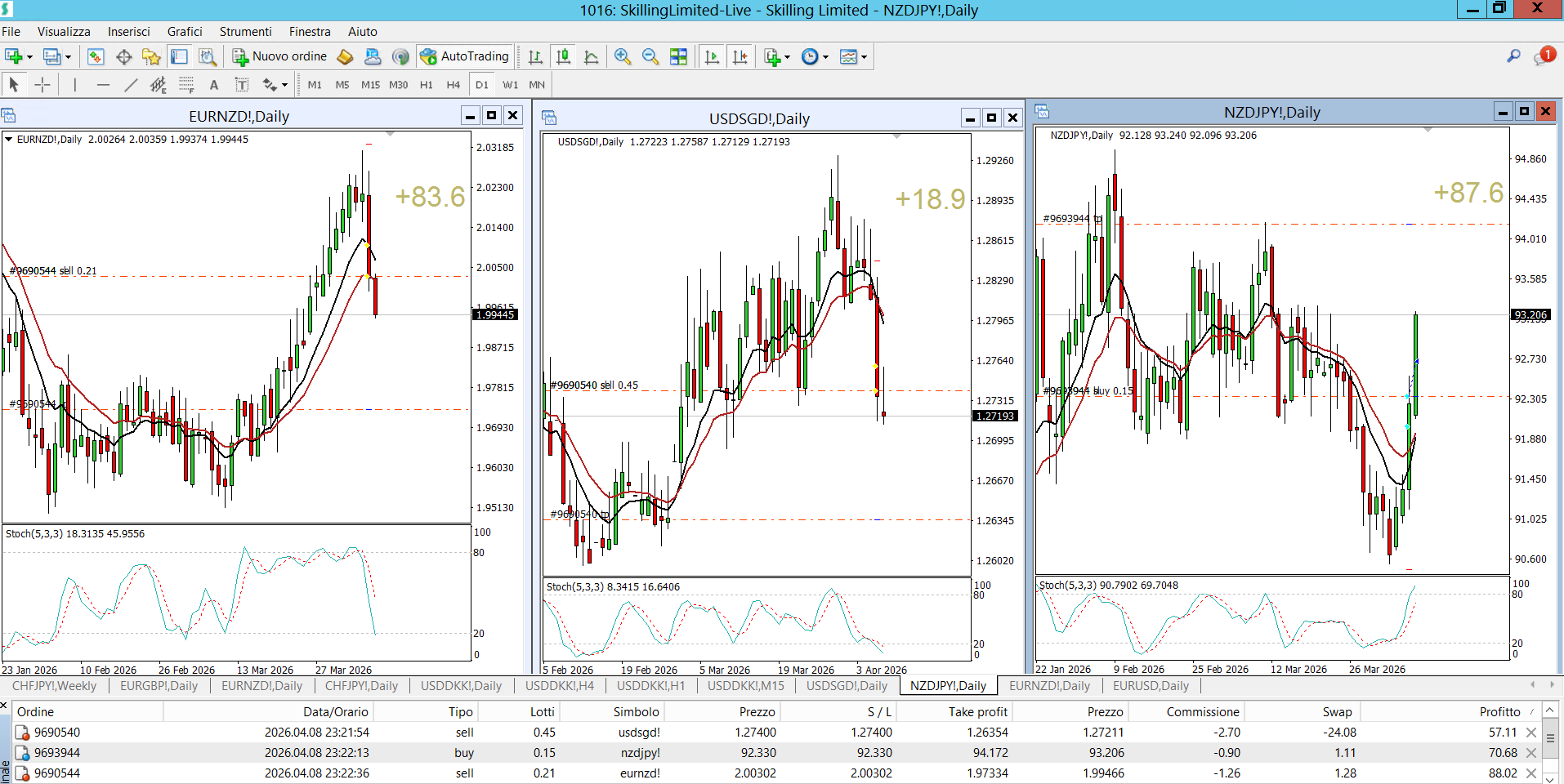 Ecco la fantastica situazione alle 18.15 dei 3 segnali inseriti a mercato ieri.