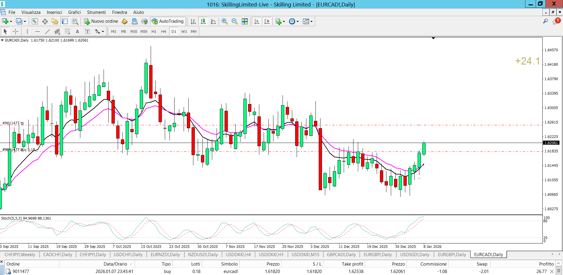Situazione alle 9.27 del segnale DI INVERSIONE BUY SU EURCAD DI IERI SERA