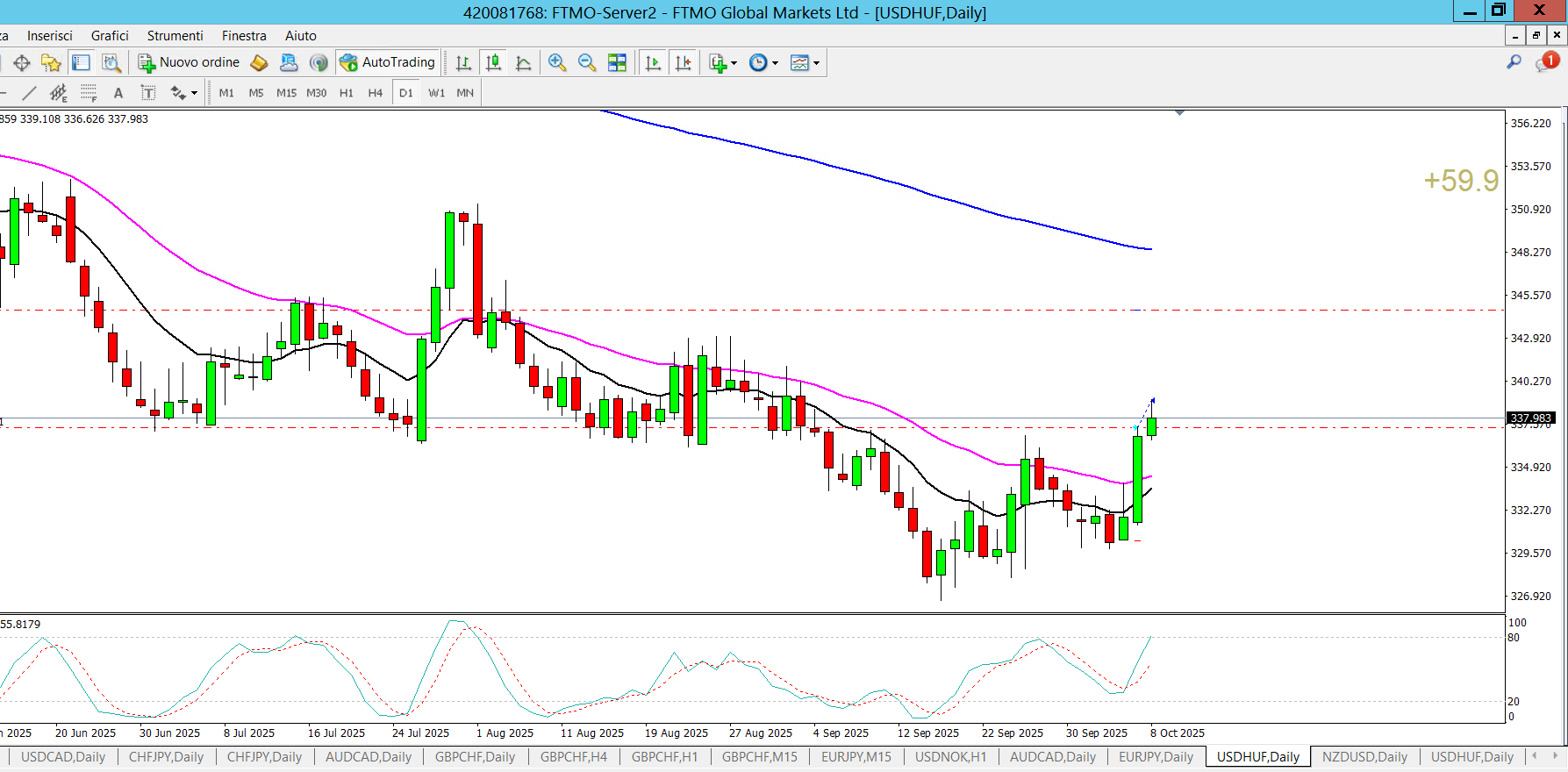 Situazione alle 9.27 del segnale RUBINO BUY SU USDHUF DI IERI SERA