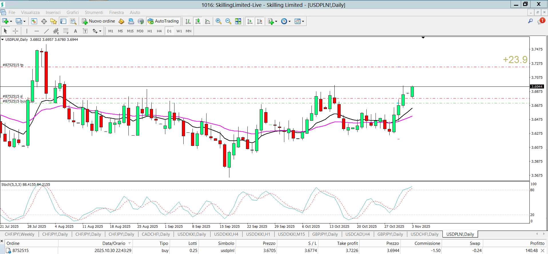 Gestione alle 10.05 del segnale RUBINO BUY SU USDPLN DEL 30/10