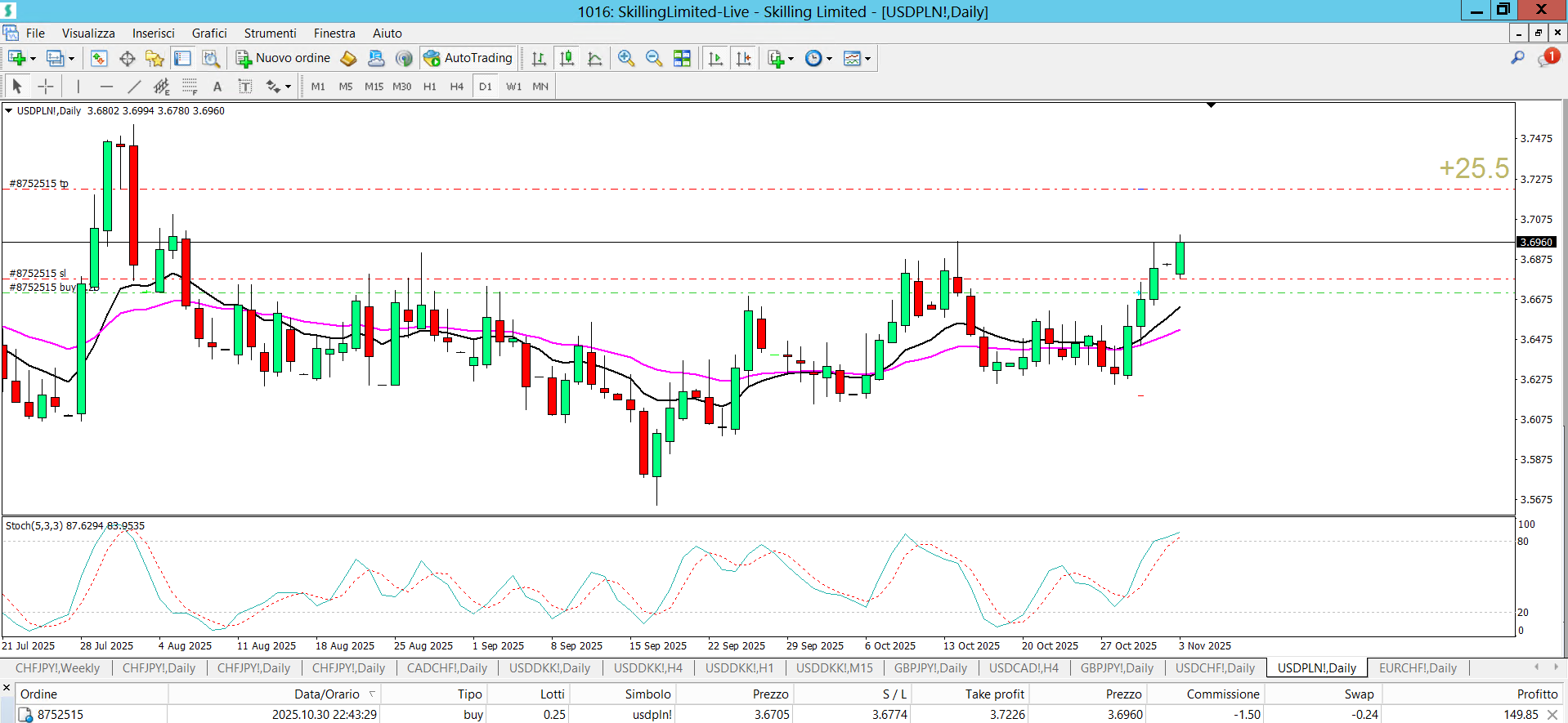 Situazione alle 15.22 del segnale RUBINO BUY SU USDPLN DEL 30/10