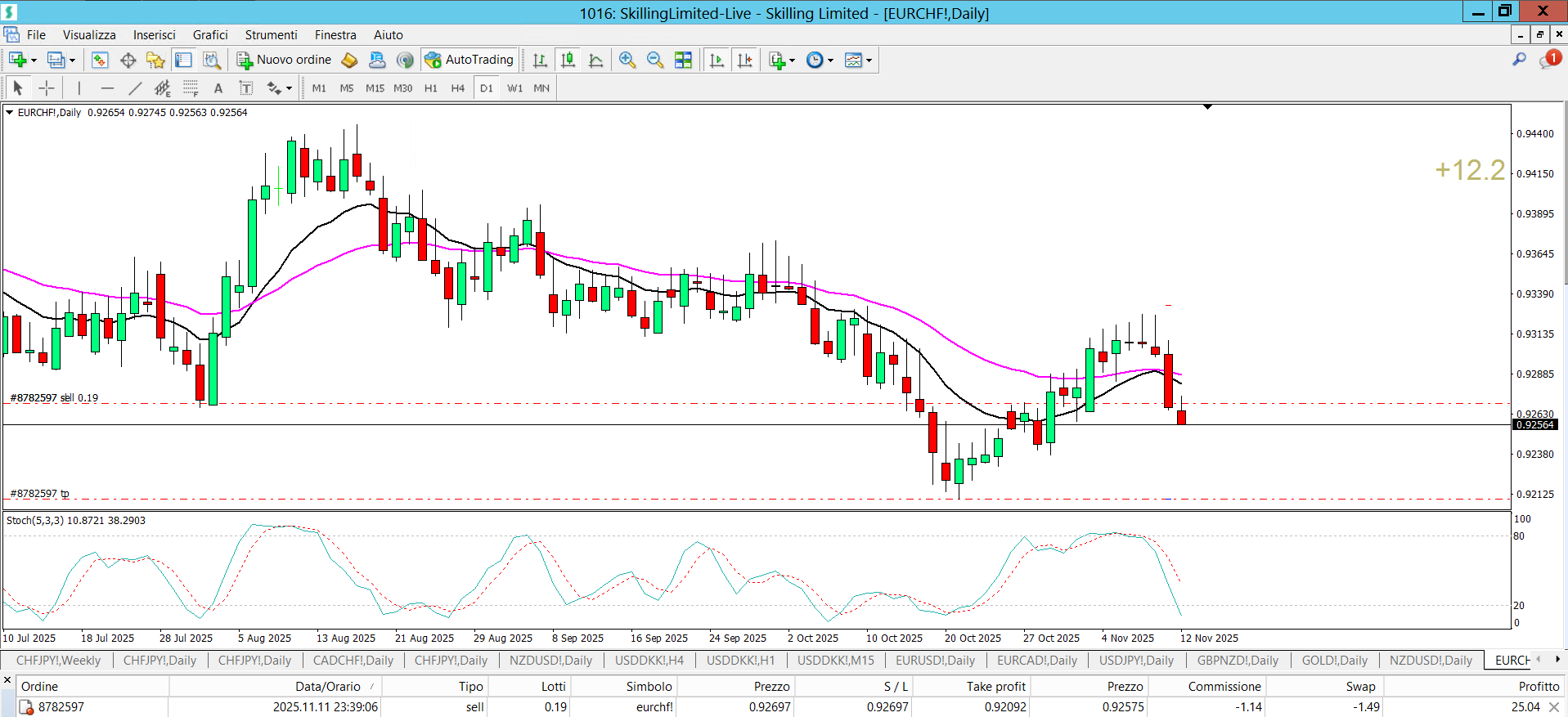 Situazione alle 9.30 del segnale DI INVERSIONE SELL SU EURCHF DI IERI SERA