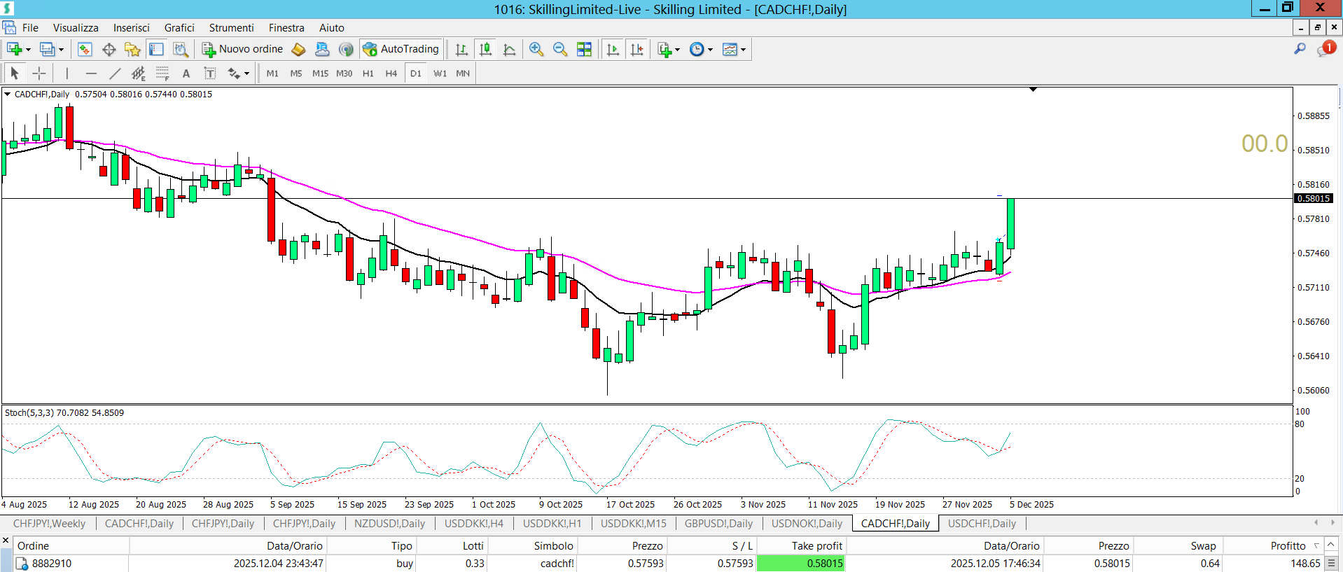 TARGET SUL SEGNALE RUBINO BUY SU CADCHF